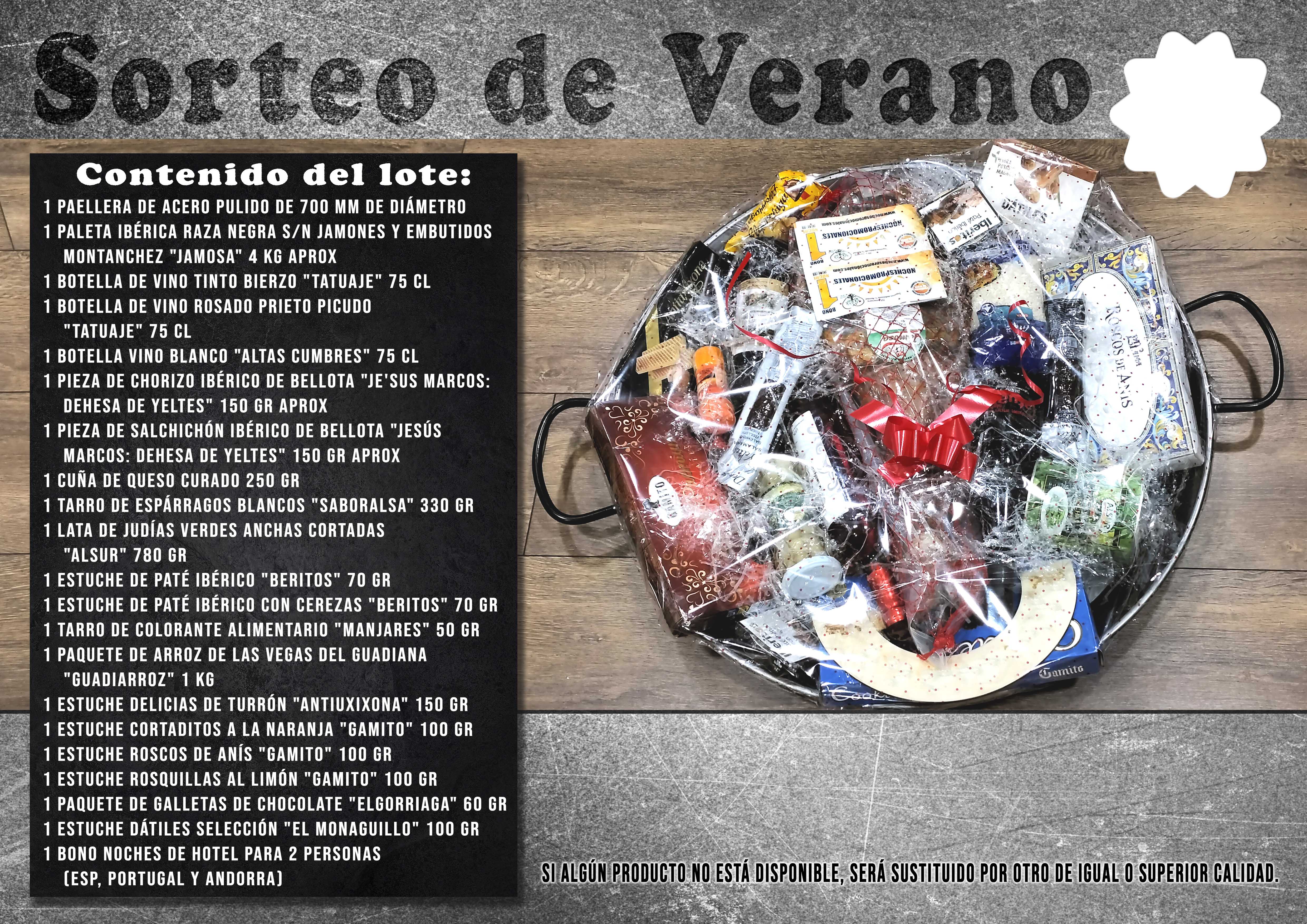 Pero eso no es todo, junto con esta increíble paellera, te ofrecemos un completo lote de productos cuidadosamente seleccionados. Desde los mejores embutidos ibéricos junto con 1 paleta ibérica raza negra, una variedad de vinos y mucho más...